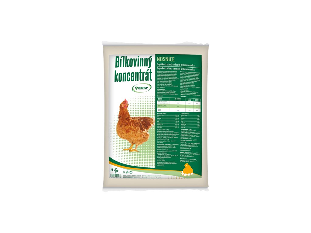 Kvalitní bílkovinný koncentrát pro nosnice, který slouží k doplňování krmných dávek. Obsahuje